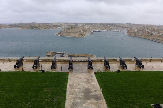 A Felső Barrakka Kert ágyúsora, melyek közül kettő minden nap délben megszólal. (Lukács Csaba fényképe)