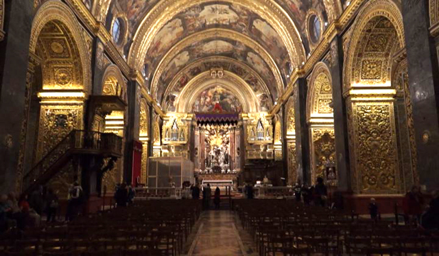 A társkatedrális az egykori főváros, Mdina főtemploma mellett a Vallettában megépült "fióktemplom", igazi vegyes stílusú, szakrális épület. Puritán, katonai külső mellett... (részlet a forgatott filmből)