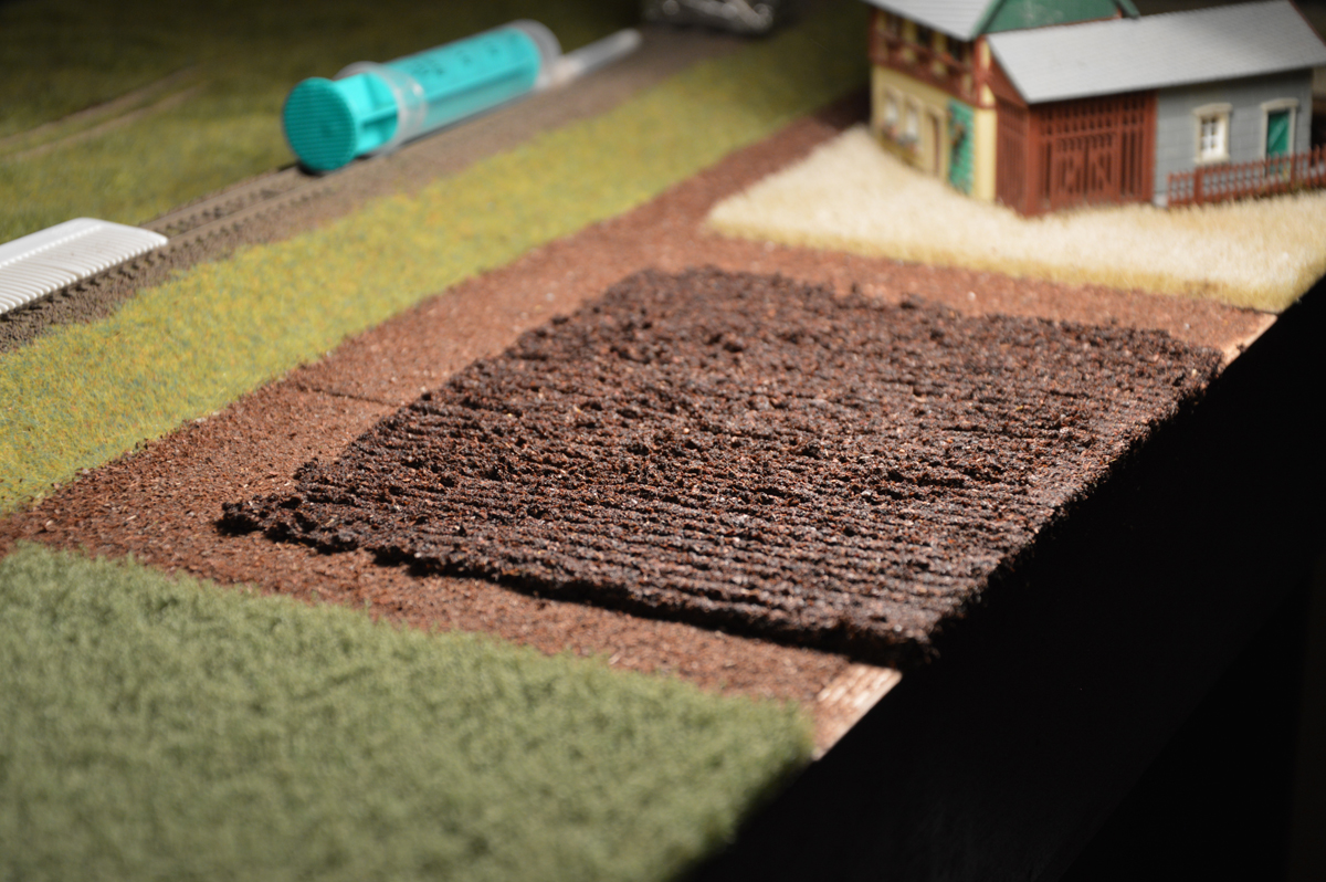hígított faragasztóval és rászórtam a talajalapot. A kis mélyedések még
