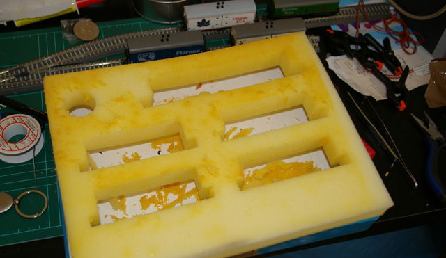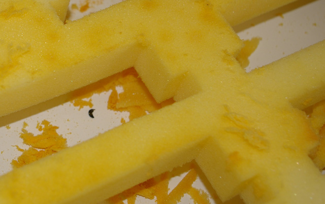 Első lépésként a szivacs szétporladt darabjait ki kellett mosnom az alapformából, illetve a dobozból.